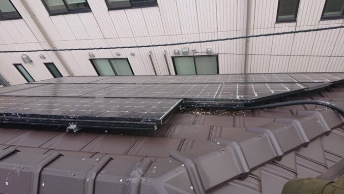一戸建てのお家の屋根にソーラーパネルを設置されていますが、パネルの下に鳩が巣を作ってしまったようです。