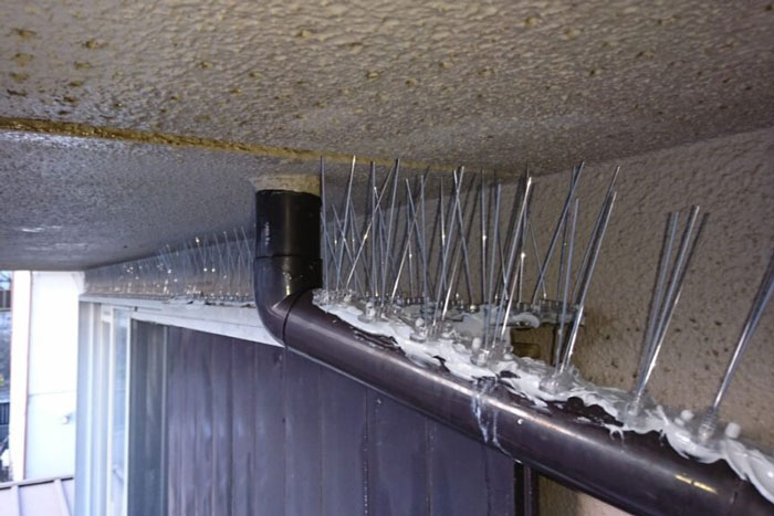 鳩がよく止まる場所に乾山のようなステンレス製の針を設置することで、鳩が止まれないようにしていきます。