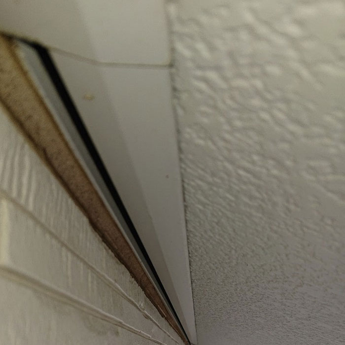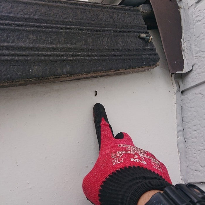 隙間の中にも、外壁にもコウモリのフンがついており、ここから常に出入りしていることはすぐにわかります。