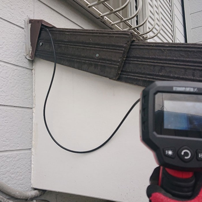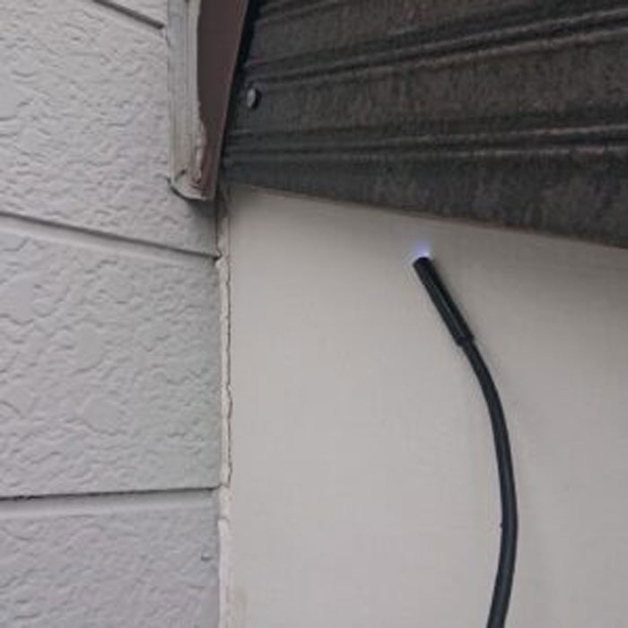 屋根の隙間から電子スコープを使って、どのくらいのコウモリが入り込んでいるか確認していきます。