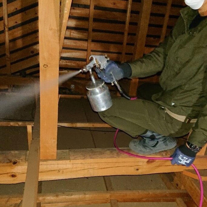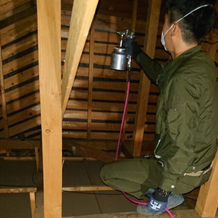 プロ用の噴霧器と薬剤であるため、天井裏の奥に逃げてしまっているコウモリも追い出すことができます。