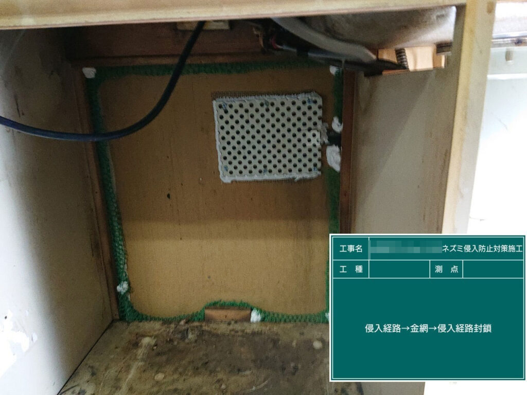 再侵入を防ぐため、侵入口となっている箇所を封鎖します。